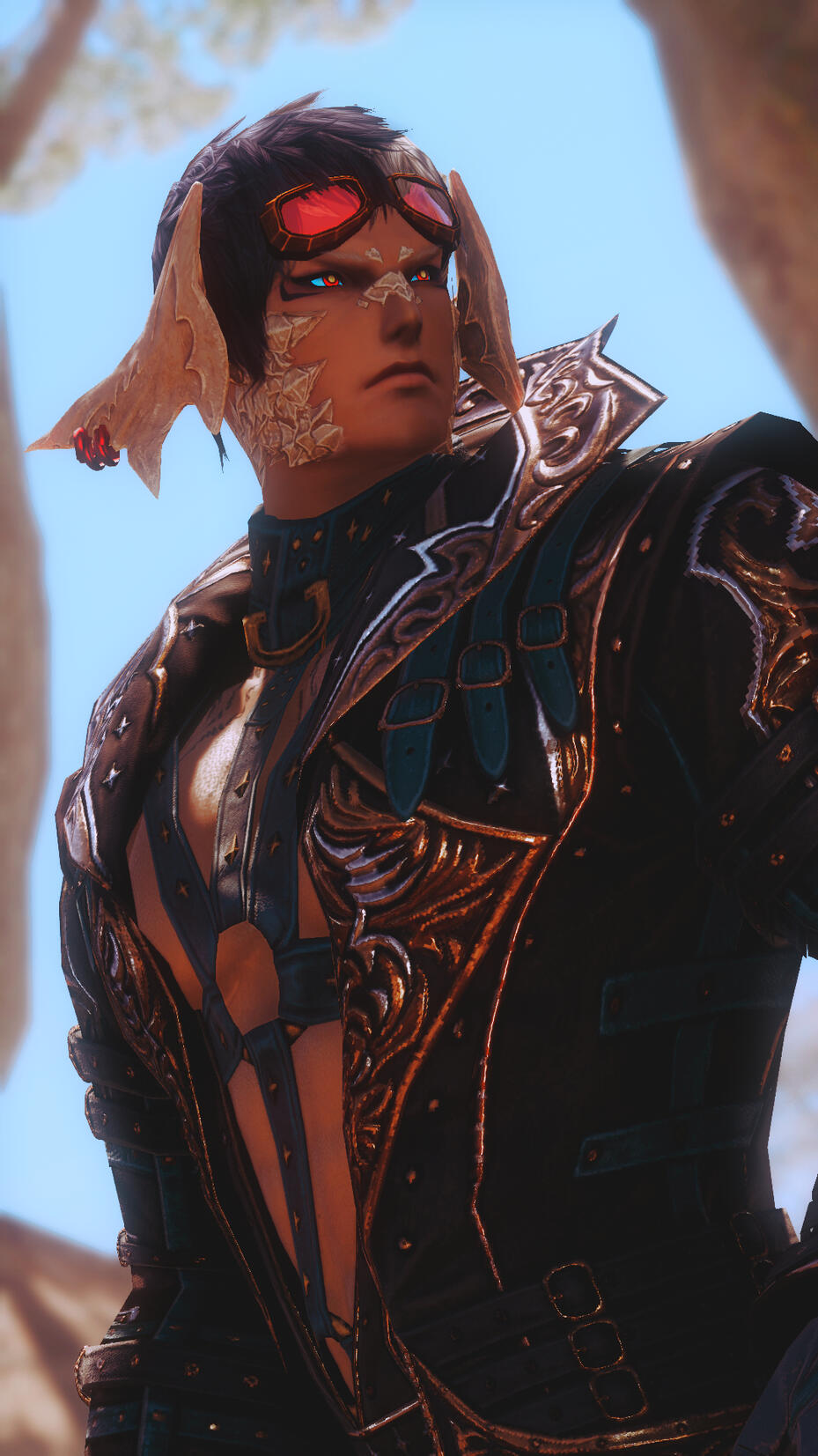 ㅤTATTOOSㅤㅤmost of dominve's limbs are covered in intricate tattoos of sigils with both his arms and legs nearly fully blacked out. the tattoos are great significant to the culture of his clan and often represent the strengths and values of the person who wears them. dominve's are for his sensitivity to aether and help conduct the flow of aether through his body, regulating it.