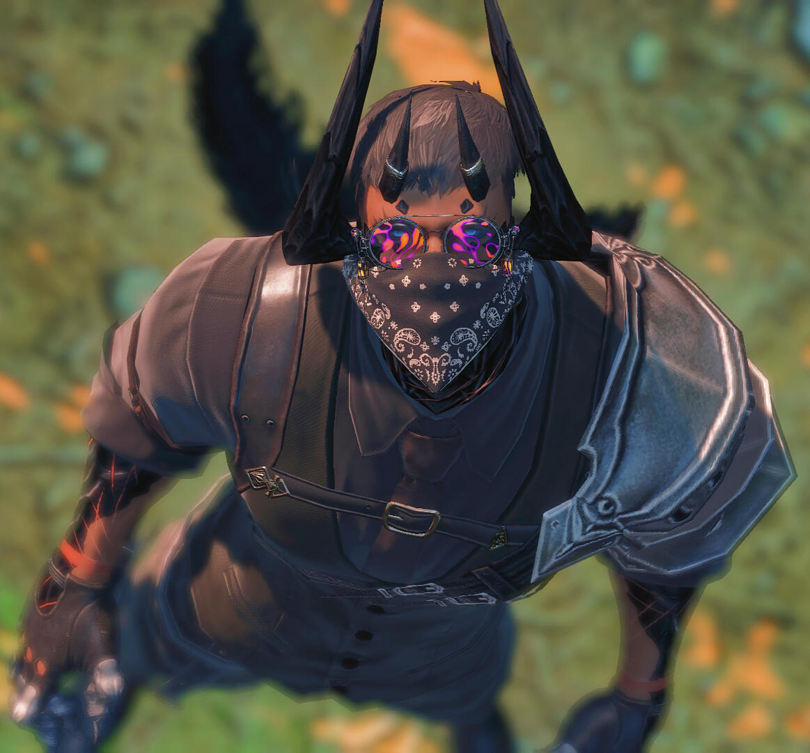 a bounty hunter who conceals his identity to keep himself anonymous, doing his best to disguise his miqo'te features.