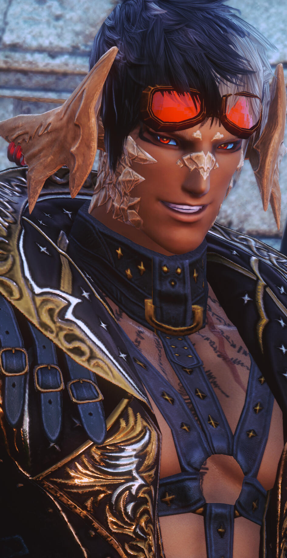 ㅤSCALE PATTERNㅤㅤdom lacks scales on his chin, chest, and back where other male aura would typically sport large patterns of scales.